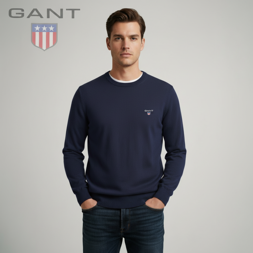 The lightweight, breathable cotton fabric ensures comfort all day long, while the iconic GANT logo embroidered on the chest adds a touch of understated luxury. Whether paired with jeans for a relaxed look or layered under a jacket for a refined outfit, this jumper is a versatile wardrobe essential.