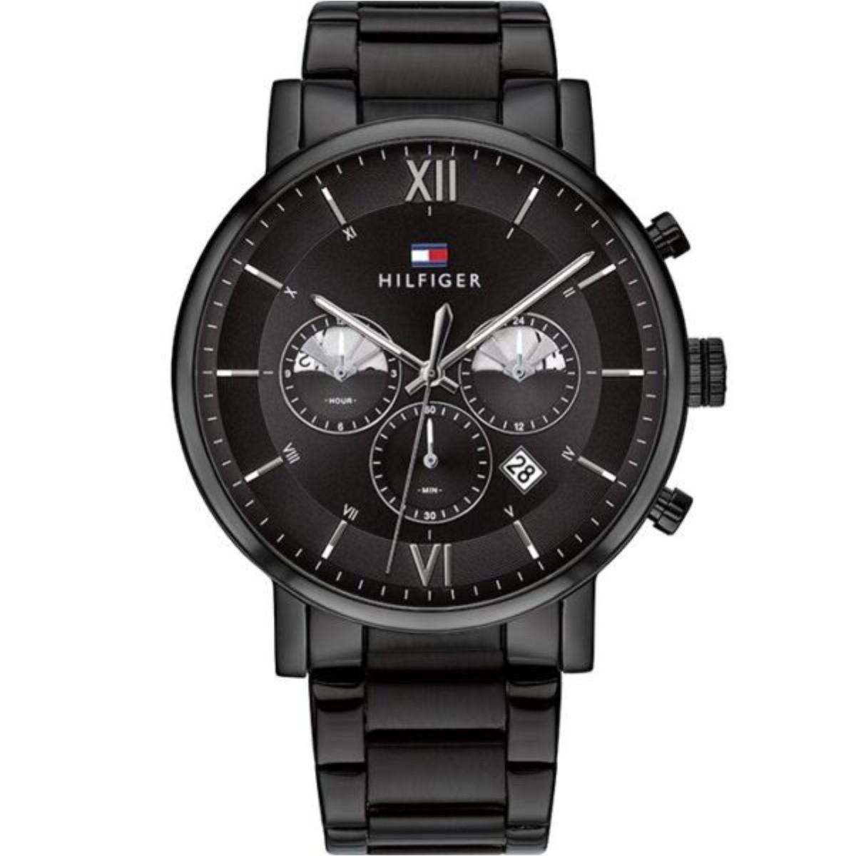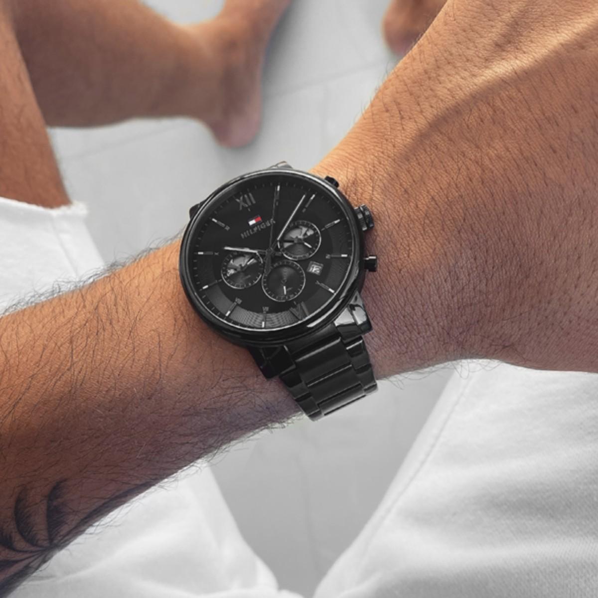 1. Get the classic look with the Tommy Hilfiger Men’s Black Dial Ionic Plated Black Steel Watch.